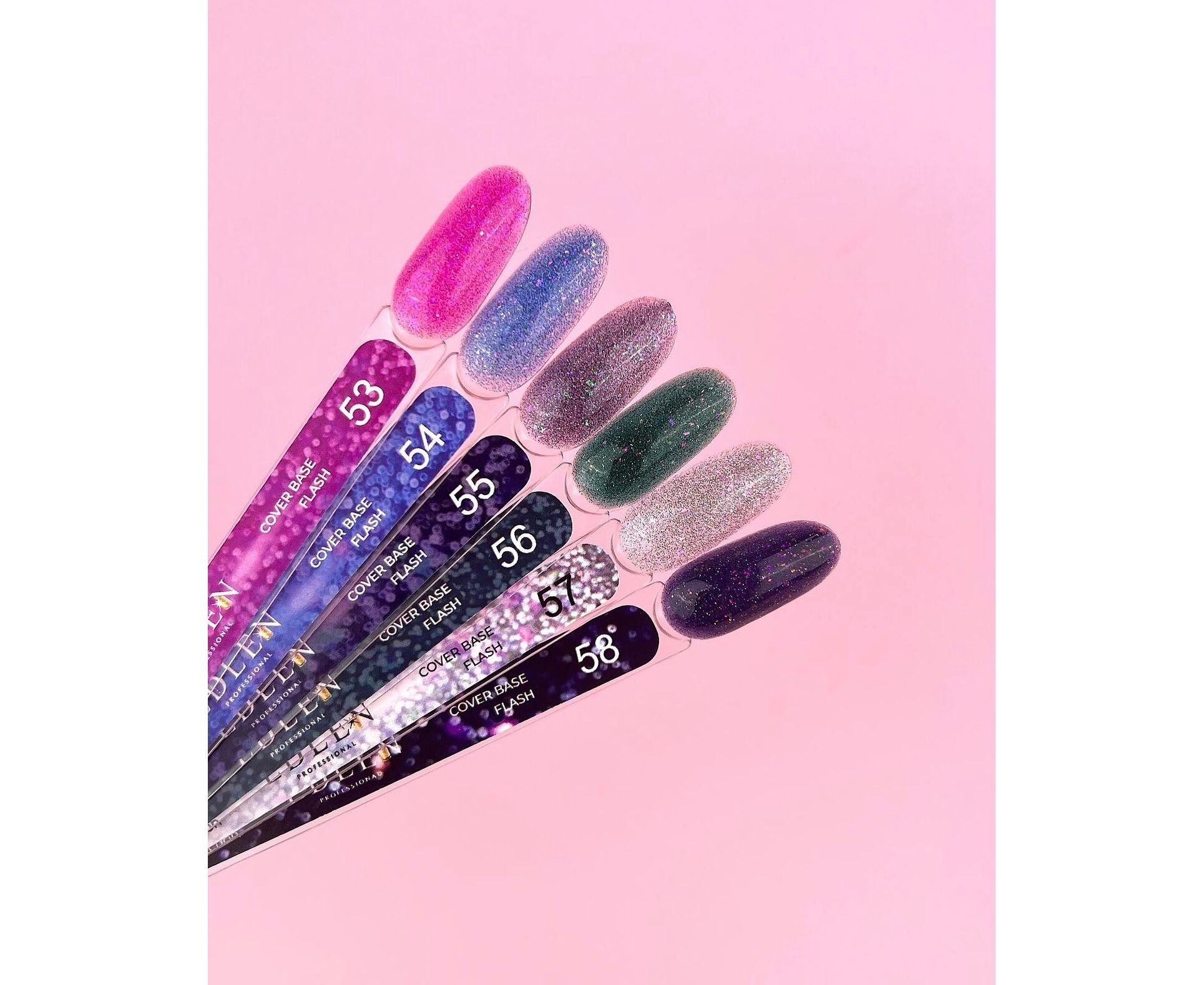 До складу Cover Base FLASH входять блискітки, поталь та світловідбиваючий пісок, що створюють ефект мерехтіння на нігтях.