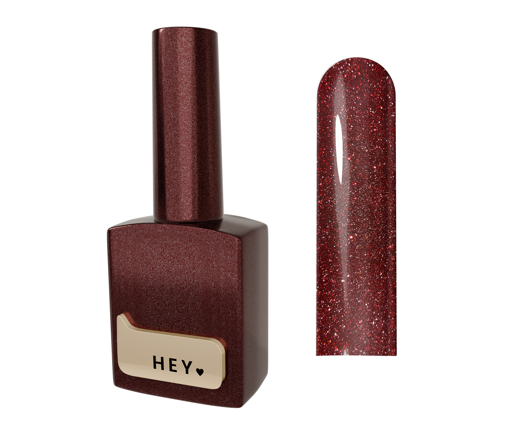 УЦІНКА / HEYLOVE. Reflective Gel Polish, AMBITIOUS, 15 ml, гель-лак, яскравий червоний зі срібними світловідбиваючими частинками