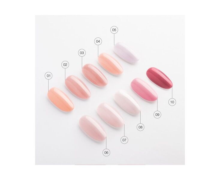 під пігментовану базу рекомендується нанесення рухами, що втирають, тонкого шару Rubber base gel або Quick Base з подальшою полімеризацією 30 секунд в Led-лампі або 2 хвилини в UV-лампі. Пігментовану базу наносимо в 2 тонкі шари з полімеризацією кожного шару 90-120 секунд. На розсуд майстра допускається нанесення одного шару з легким (мінімальним) вирівнюванням нігтьової пластини за необхідності. Полімеризація у разі також становить 90-120 секунд.