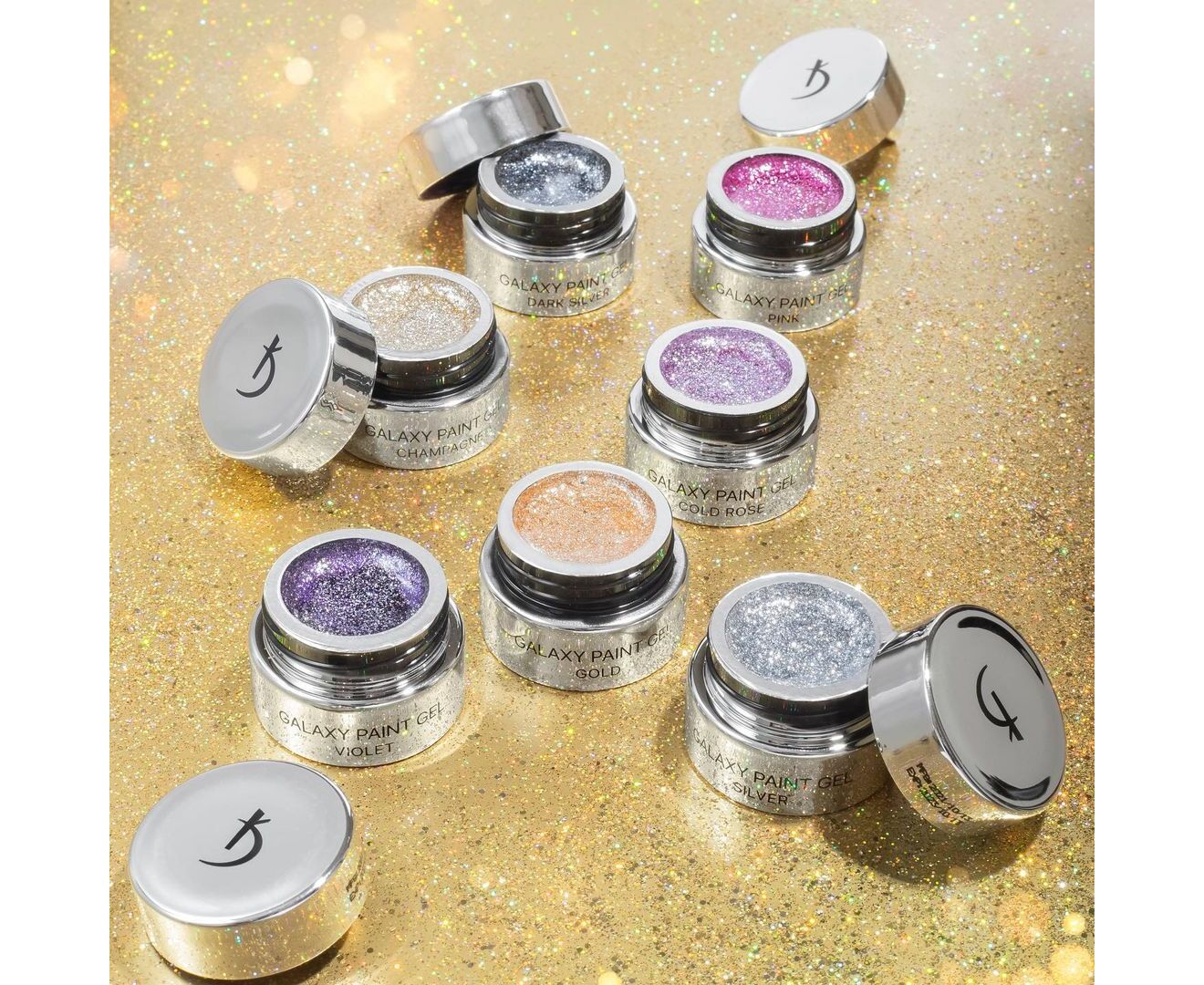 Серія Galaxy — це пігментовані гель-фарби з шимером, що можуть застосовуватися не лише для створення різних дизайнів, але й як основне покриття.