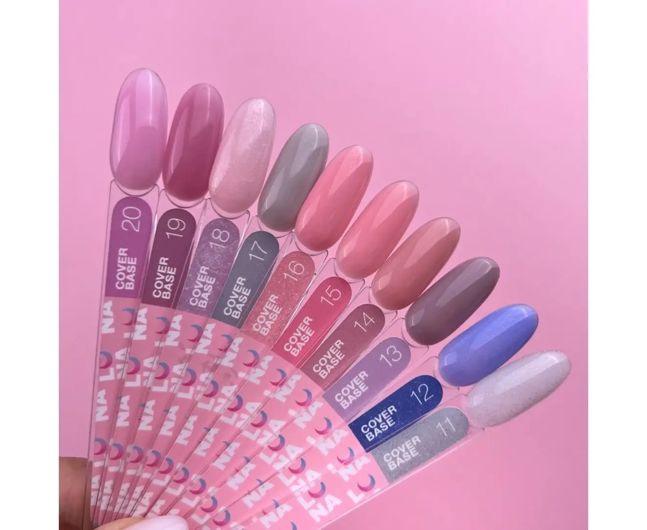 Cover Base №12 — це камуфлююча база в блакитному кольорі з блискітками. Вона красиво виглядає в глянцевому варіанті, а ще цікавіше в матовому.