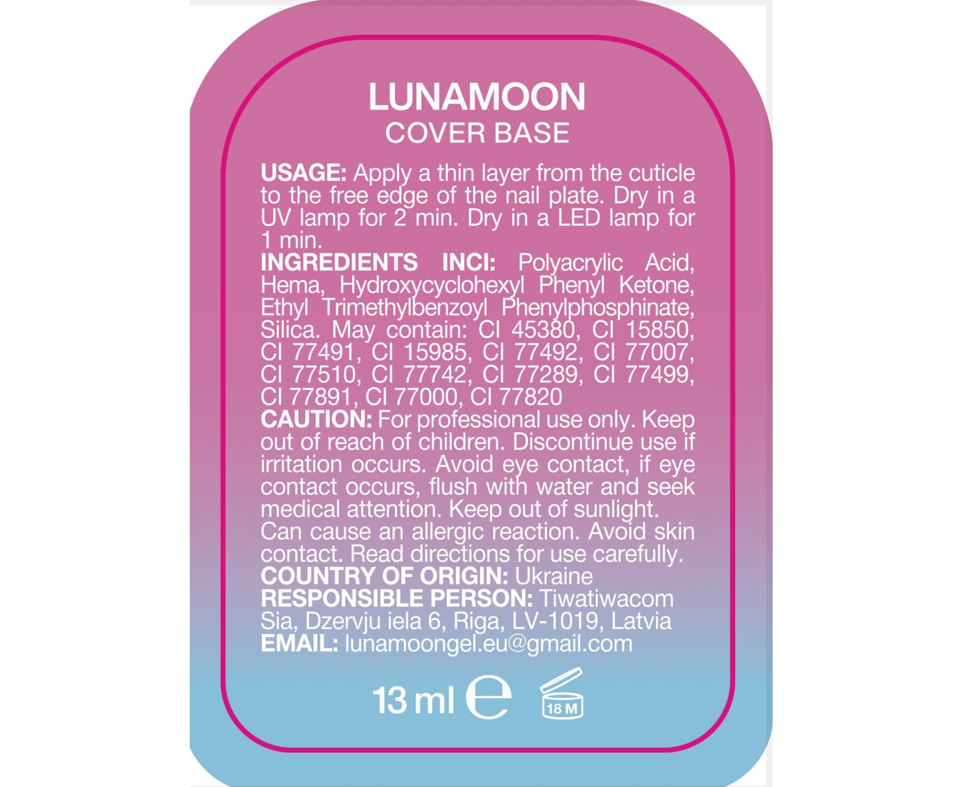 УЦІНКА / LUNAmoon. Cover BASE #12, BLUE-VIOLET with SHIMMER, 13 ml