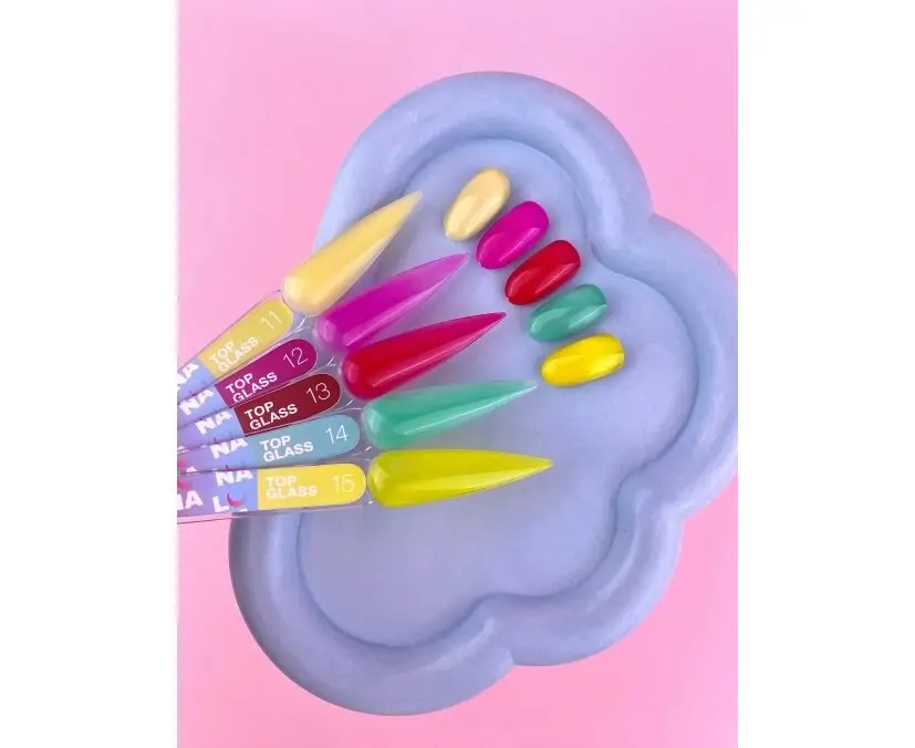 Тоp Glass — це кольоровий топ без липкого шару, який тримає блиск до 4-х тижнів.