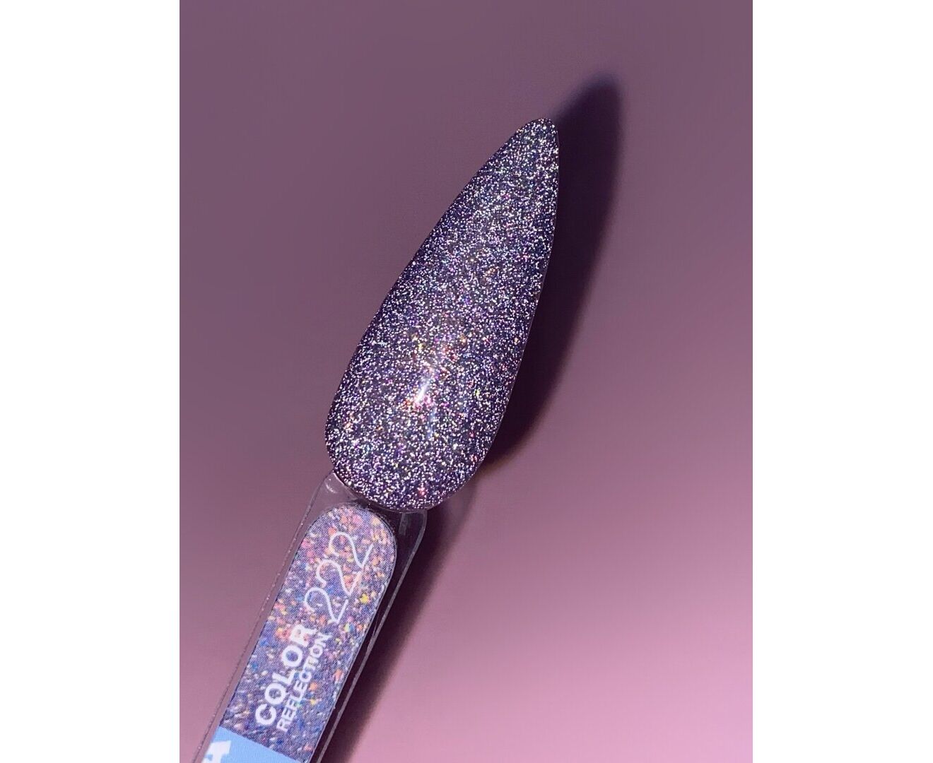 Color Reflection №222 — світловідбиваючий гель-лак, який ідеально наноситься як в один, так і у два тонких шари. Не лягає смугами та легко самовирівнюється. Має середньо-густу консистенцію.Зручний флакон та якісний пензлик гарантують рівномірний розподіл матеріалу без затікань по всій нігтьовій пластині. Гель-лак має стійке покриття, не тріскається та не скочується.