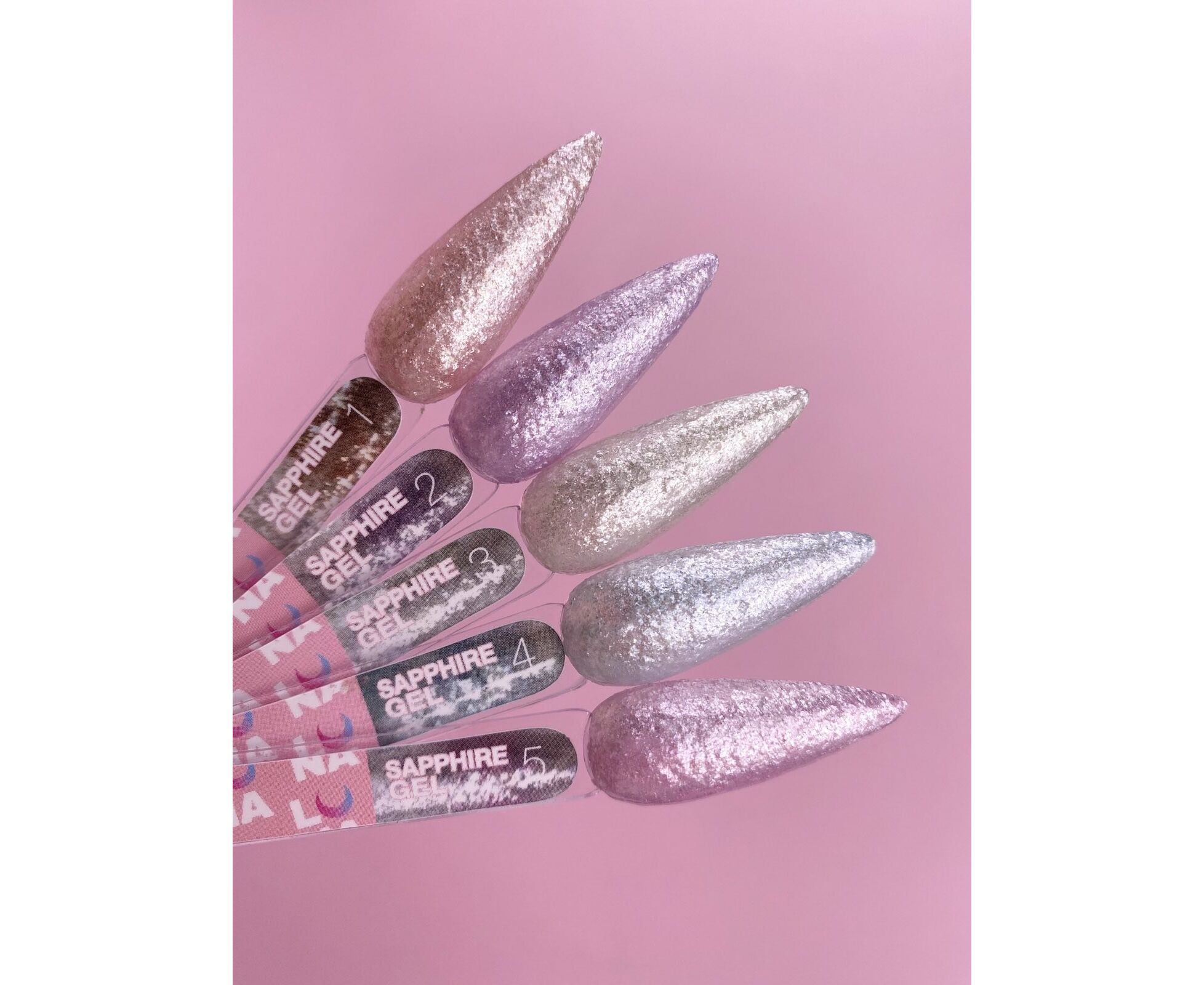 Sapphire Gels — гель-пасти, насичені блискітками, які створені для дизайнів. Ця колекція включає п'ять відтінків, кожен із яких має чарівне сяйво, нагадуючи справжні дорогоцінні сапфіри.