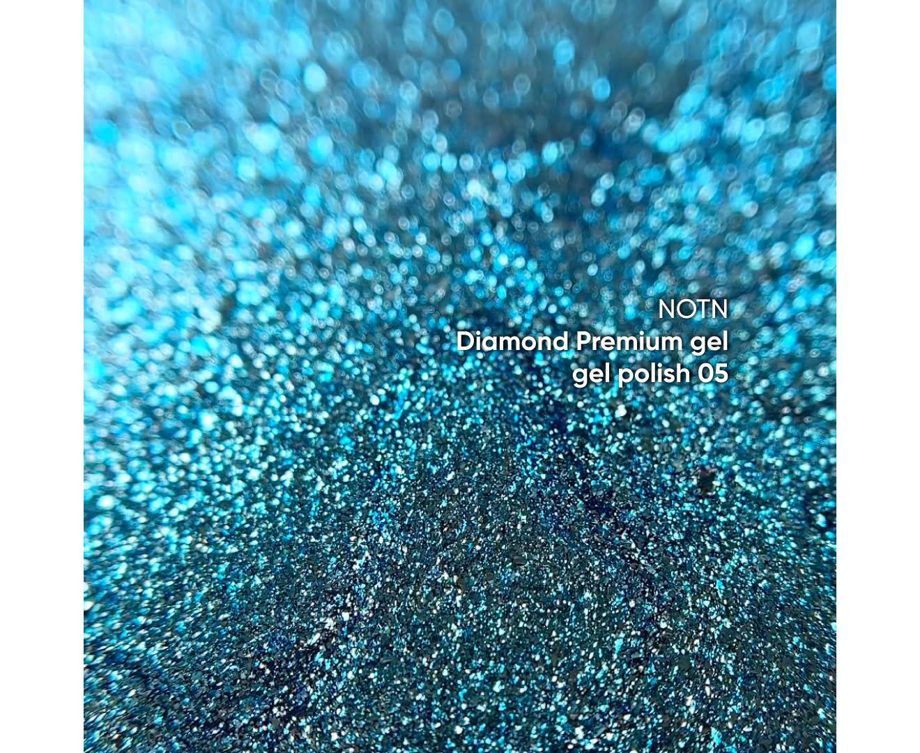УЦІНКА / NOTN Гель-лак Diamond Premium №05, 5 ml, блакитний з дрібною металевою поталлю