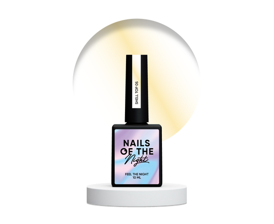 NOTN Shell Top - це топ без липкого шару, що поєднує перлинний ефект та ефект втирки в одному флакончику. Забудьте про триетапне покриття та сколи. Тепер втирка та покриття звичайним топом поєднуються в одному етапі. З ним ваші нігтики будуть завжди в тренді: