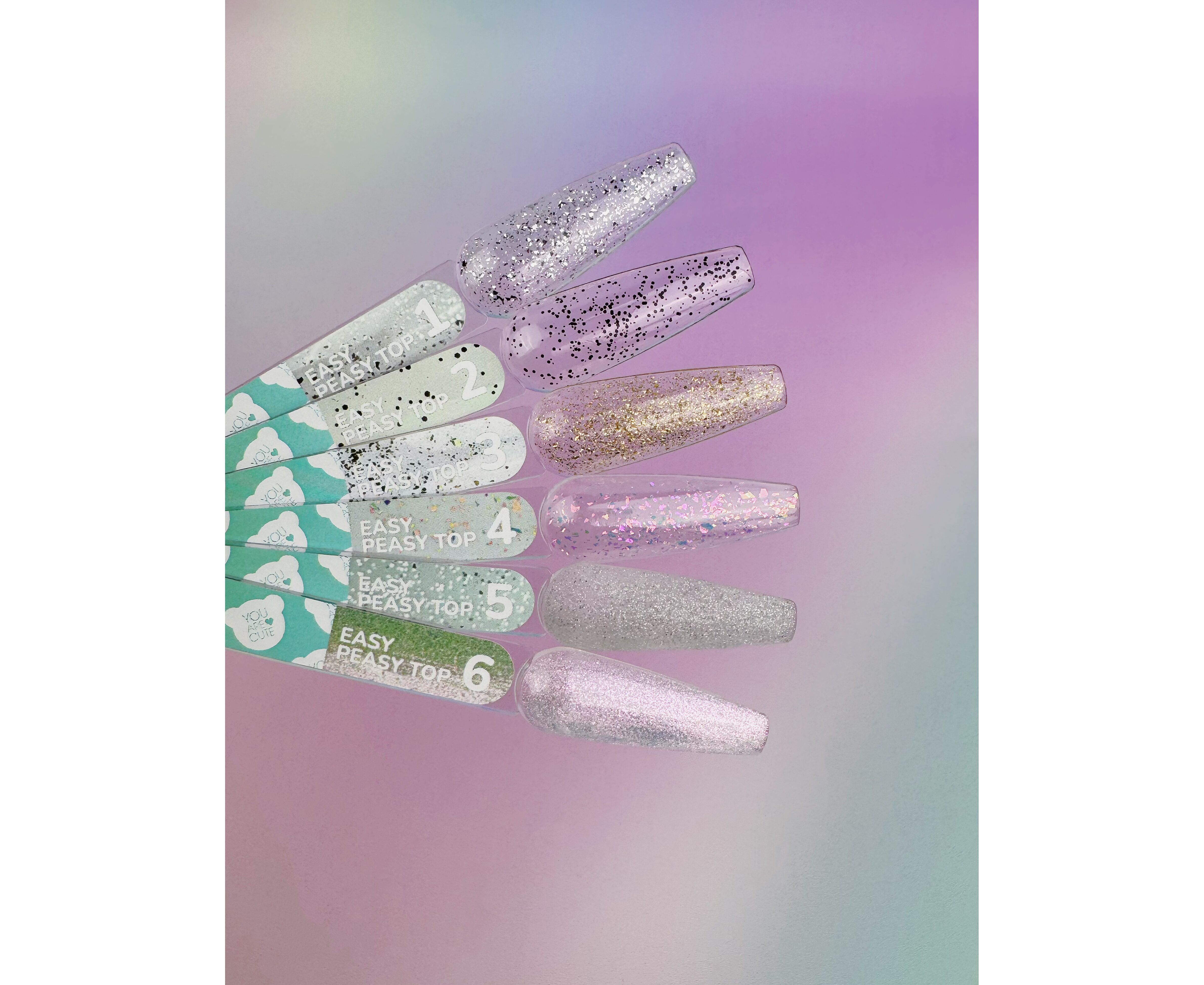 Top Easy Peasy - топ з декоративними елементами, без липкого шару, який буде гармонійно виглядати з будь-яким кольором на нігтях. Він здатний зробити ваш манікюр цікавим та незвичайним.