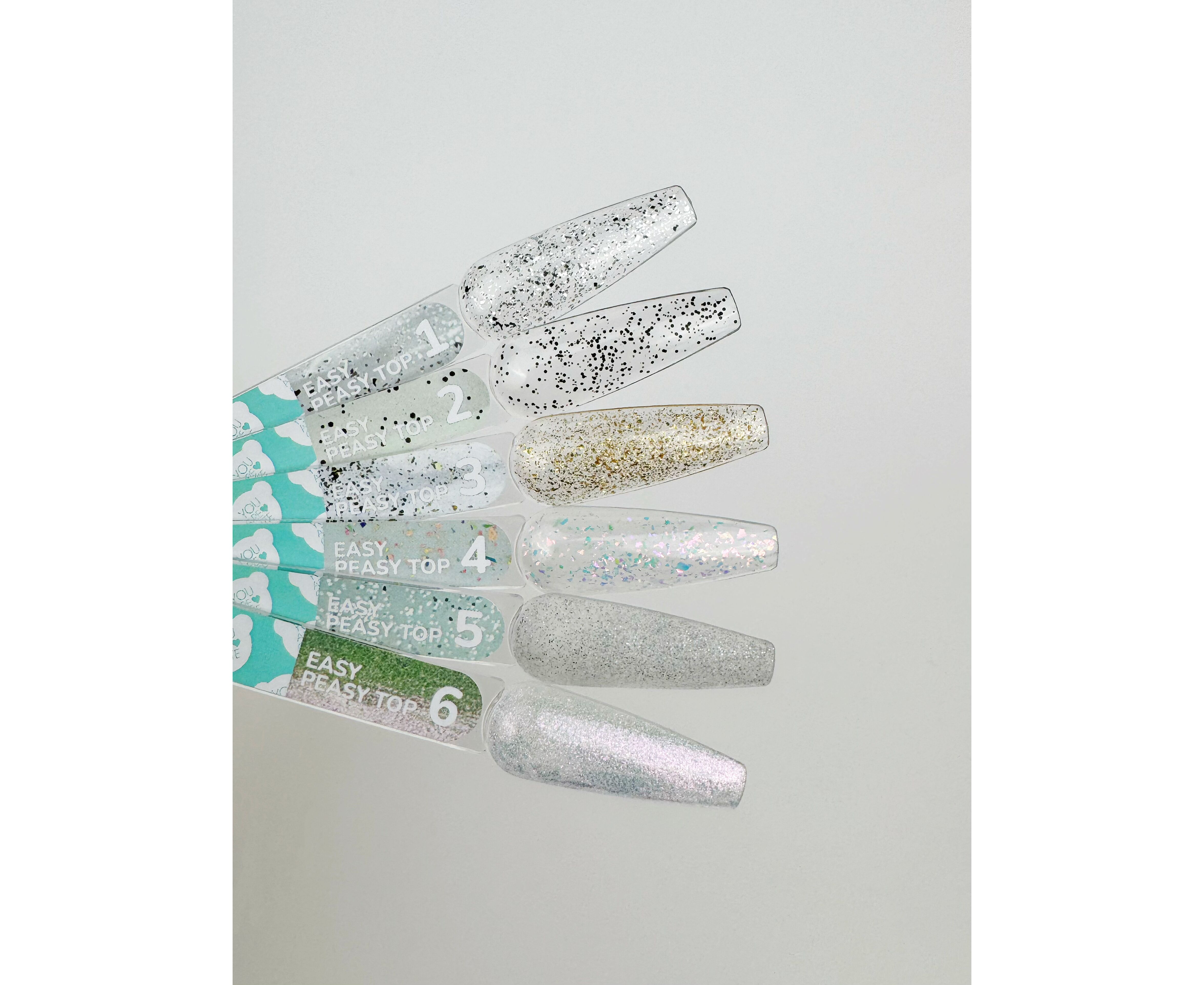 Top Easy Peasy - топ з декоративними елементами, без липкого шару, який буде гармонійно виглядати з будь-яким кольором на нігтях. Він здатний зробити ваш манікюр цікавим та незвичайним.