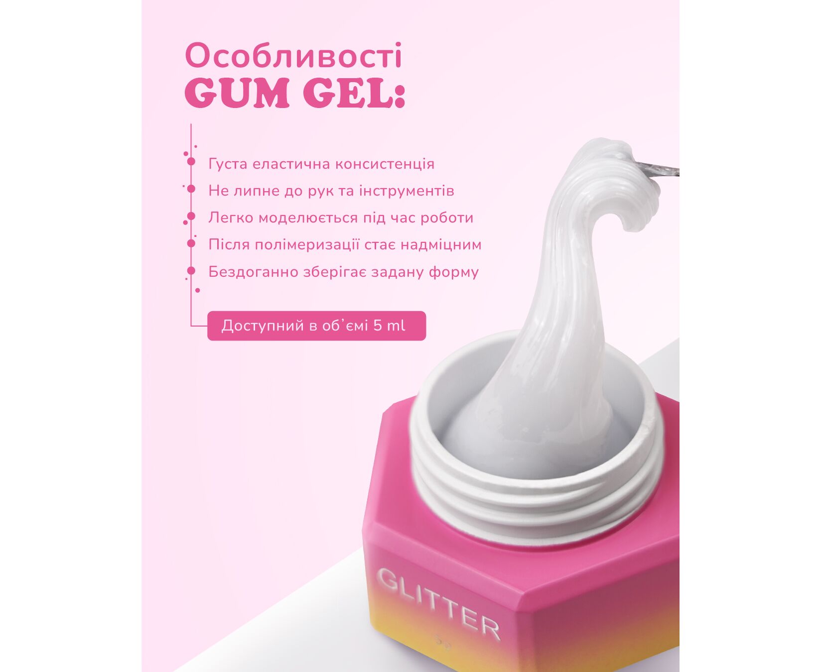 Гель-жуйка — еластичний матеріал для ліплення та створення креативних і об’ємних 3D-дизайнів. Завдяки густій консистенції гель легко моделюється, не липне до рук і дозволяє точно формувати декоративні елементи.