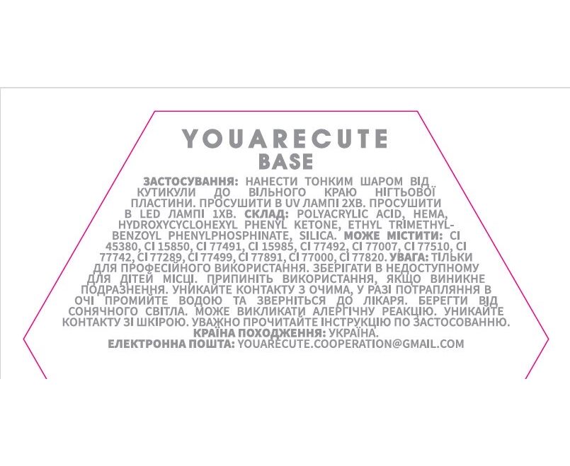 You Are Cute. Rubber base, clear, 15 ml, прозора каучукова база