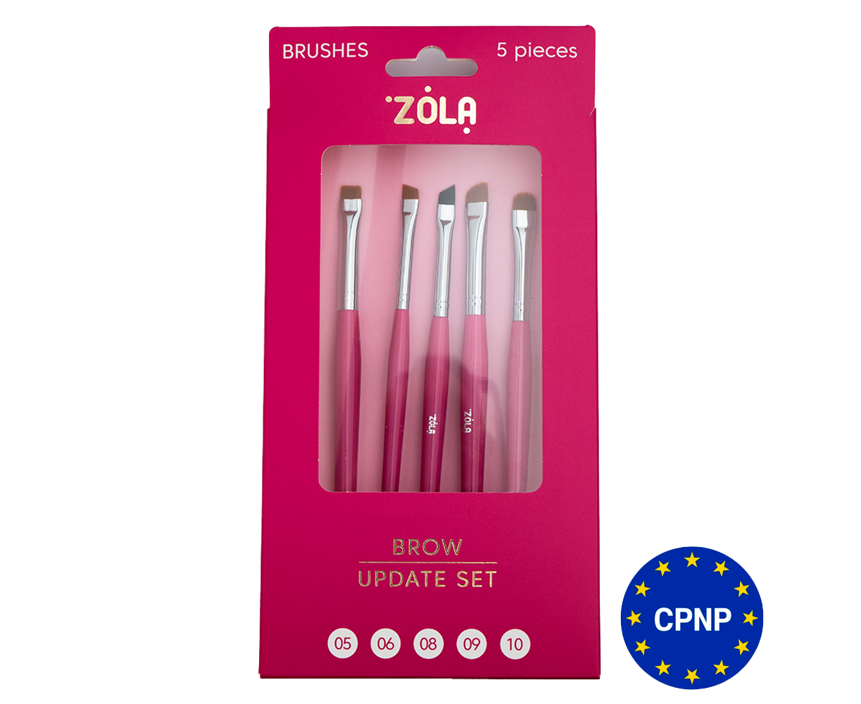 ZOLA Набір пензлів для брів – Brow Update Set (5 шт) – створений для професійного оформлення брів та ідеально підходить для роботи з фарбами, хною, освітлювальними пастами та доглядовими засобами.